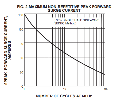 Peak forward surge current 8.3ms single half sine-wave superimposed on rated load (JEDEC Method) | IFSM | 150.0 | Amps | ||||||